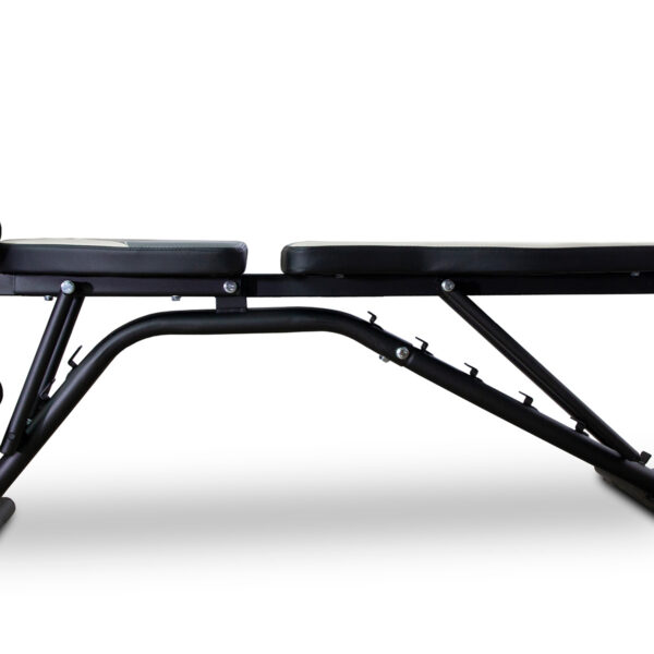 Banco multiposición. Regulaciones del respaldo, asiento y ajuste de piernas