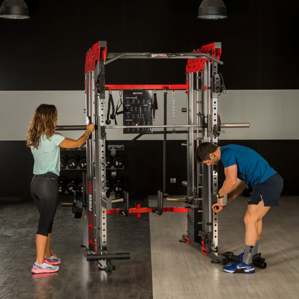 La Power Smith G145 es una máquina multifunción de musculación con garantía semiprofesional, ideal para entrenamientos completos y exigentes. Su diseño robusto permite realizar más de 40 ejercicios, y su sistema de carga combinada —con placas y discos— asegura la resistencia necesaria para progresar sin límites.