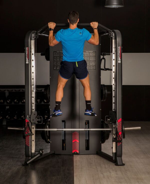 La Rack Smith G160 de BH Fitness ha sido diseñada para ofrecer una experiencia de entrenamiento completa en espacios colectivos o domésticos exigentes. Su estructura semi profesional, junto con un sistema de doble polea ajustable en 17 posiciones y una gran variedad de accesorios, permite trabajar todos los grupos musculares con total seguridad y eficiencia.